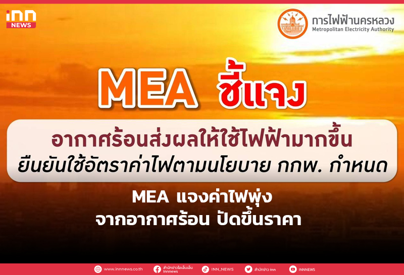 MEA แจงค่าไฟพุ่ง จากอากาศร้อน ปัดขึ้นราคา