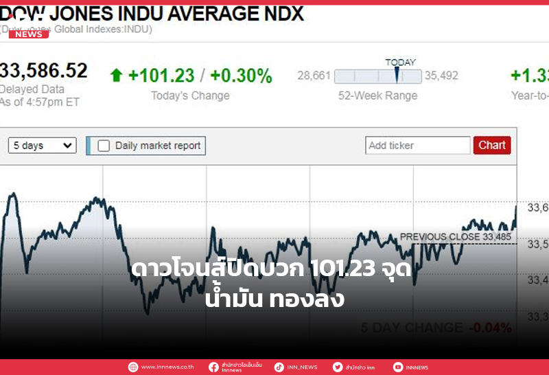 ดาวโจนส์ปิดบวก 101.23 จุด น้ำมัน ทองลง