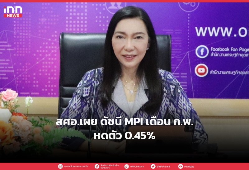 สศอ.เผย ดัชนี MPI เดือน ก.พ.หดตัว 0.45%