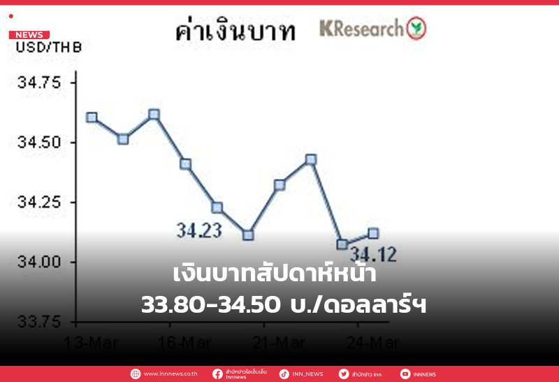 เงินบาทสัปดาห์หน้า 33.80-34.50 บ./ดอลลาร์ฯ