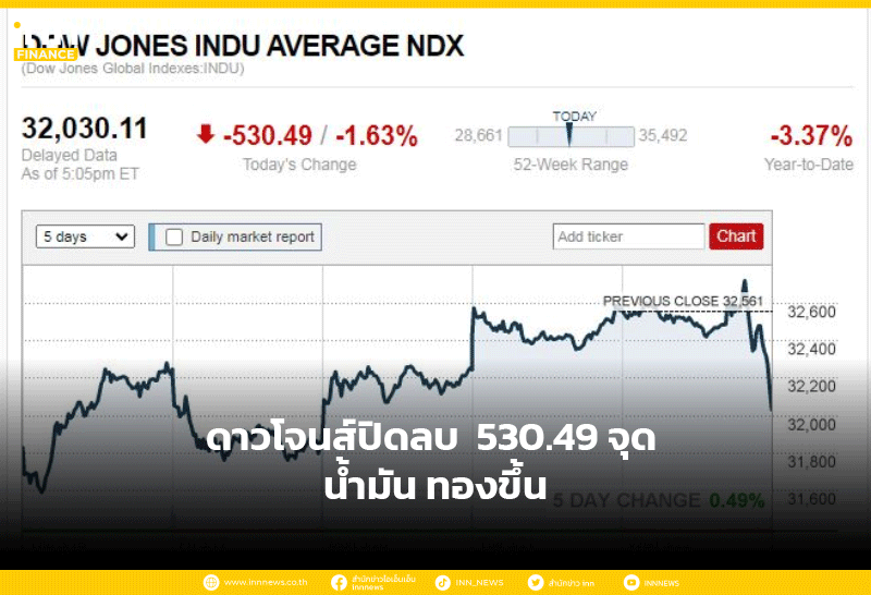 ดาวโจนส์ปิดลบ 530.49 จุด น้ำมัน ทองขึ้น