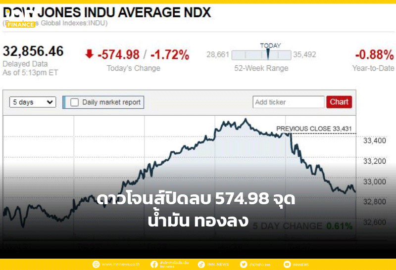 ดาวโจนส์ปิดลบ 574.98 จุด น้ำมัน ทองลง