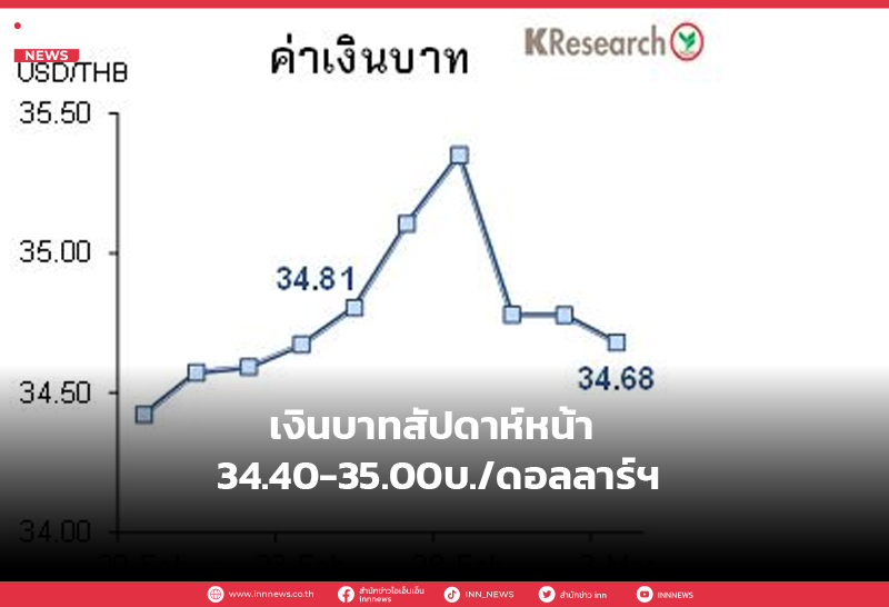 เงินบาทสัปดาห์หน้า 34.40-35.00บ./ดอลลาร์ฯ