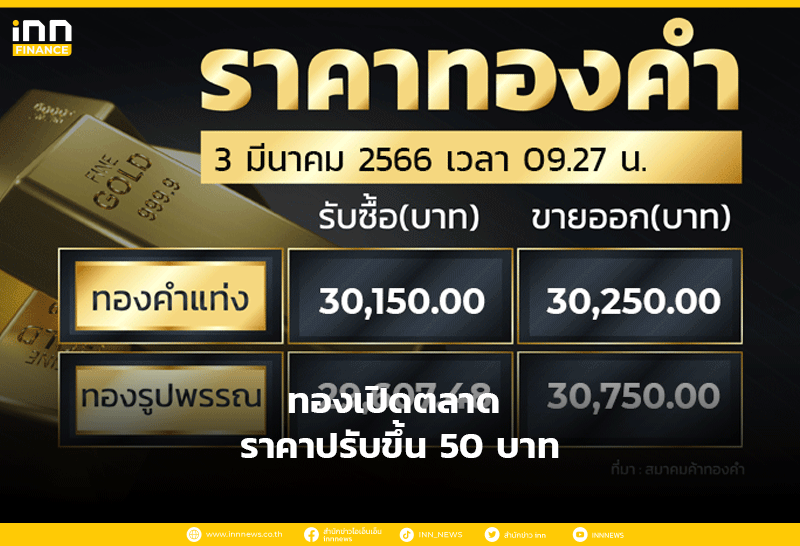 ทองเปิดตลาด ราคาปรับขึ้น 50 บาท