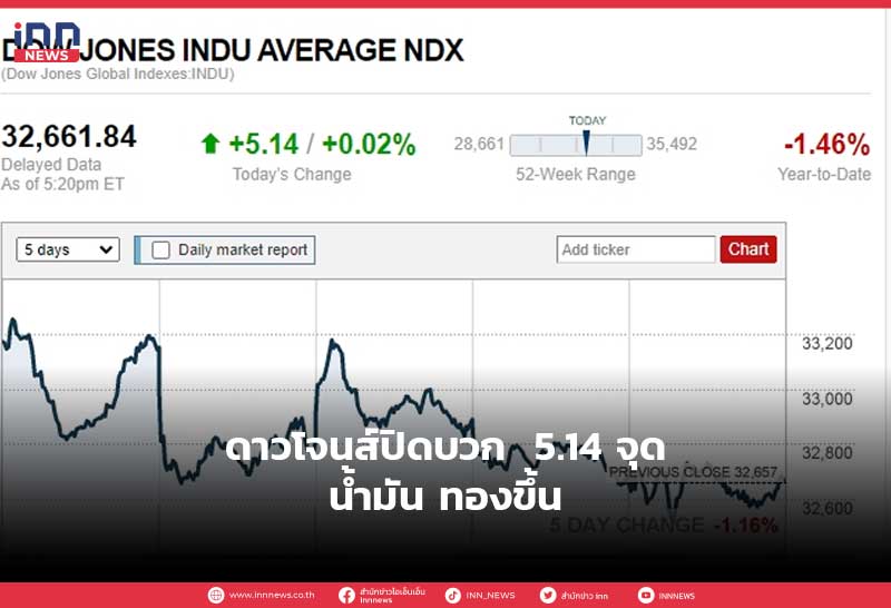 ดาวโจนส์ปิดบวก 5.14 จุด น้ำมัน ทองขึ้น