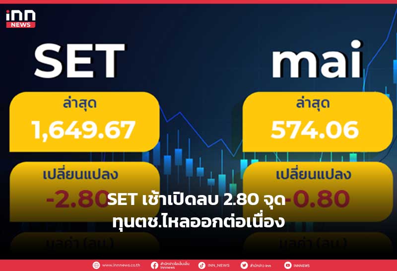 ตลาดหุ้นไทยเช้านี้เปิดลบ 2.80 จุด ทุนต่างชาติไหลออกต่อเนื่อง กังวลเฟดขึ้นดอกเบี้ยนาน