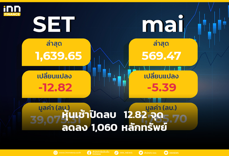 หุ้นเช้าปิดลบ 12.82 จุด ลดลง 1,060 หลักทรัพย์