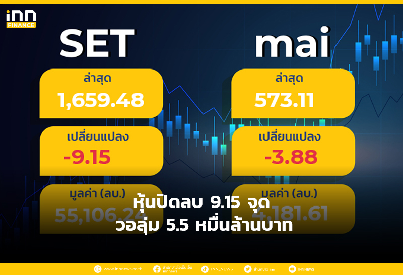 หุ้นปิดลบ 9.15 จุด วอลุ่ม 5.5 หมื่นล้านบาท