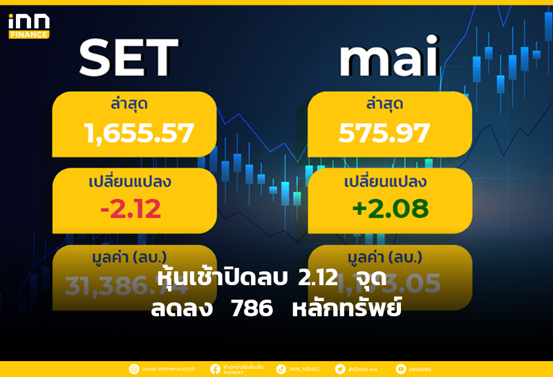 หุ้นเช้าปิดลบ 2.12 จุด ลดลง 786 หลักทรัพย์