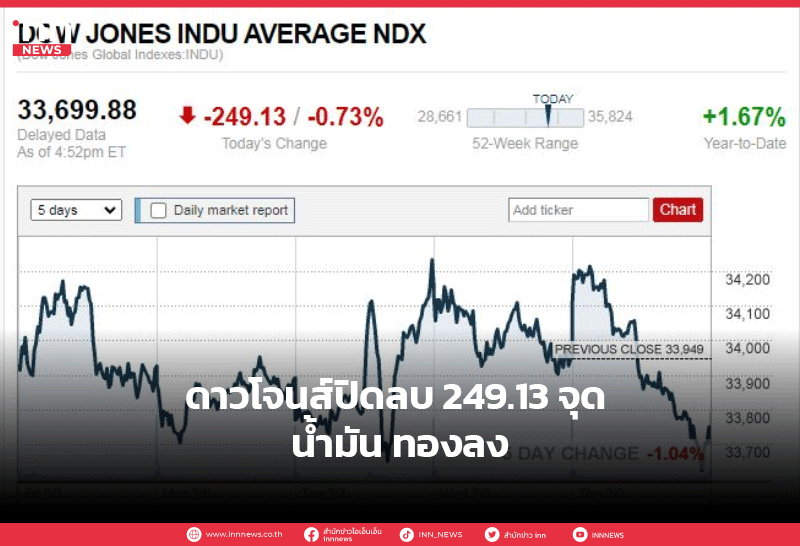 ดาวโจนส์ปิดลบ 249.13 จุด น้ำมัน ทองลง