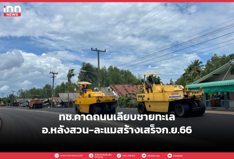 กรมทางหลวงชนบท เผย การสร้างถนนเลียบชายฝั่งทะเล อำเภอหลังสวน และละแม จังหวัดชุมพร กว่า 6.7 กิโลเมตร คาดแล้วเสร็จสมบูรณ์ในเดือนกันยายน 2566