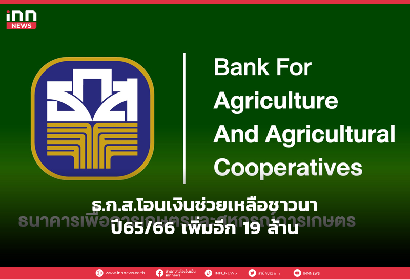 ธ.ก.ส.โอนเงินช่วยเหลือชาวนาปี65/66 เพิ่มอีก 19 ล้าน