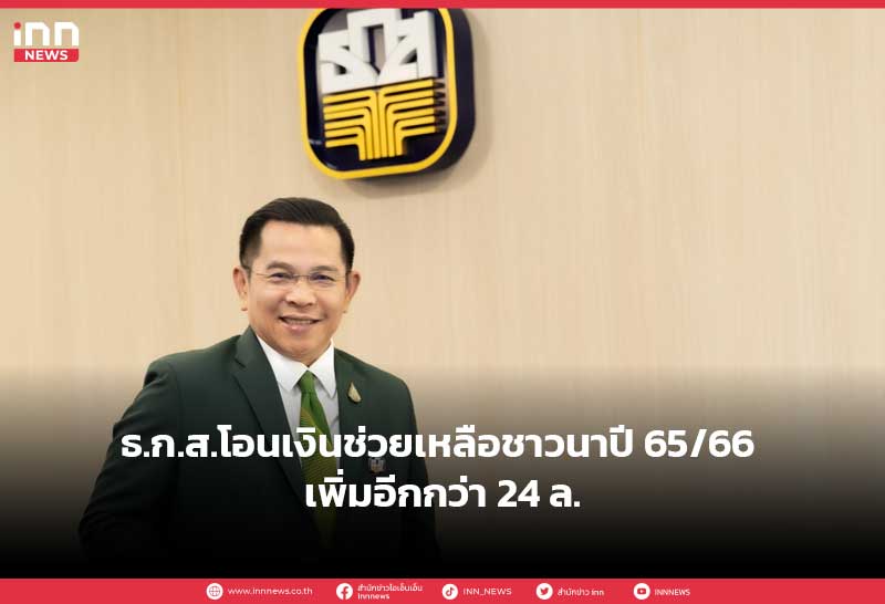 ธ.ก.ส.โอนเงินช่วยเหลือชาวนาปี 65/66 เพิ่มอีกกว่า 24 ล.