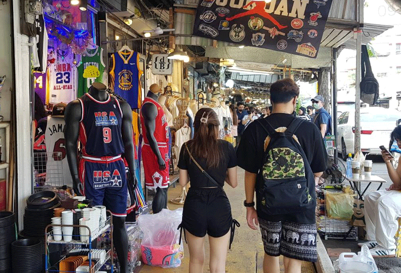 ตลาดนัดสวนจตุจักรนักท่องเที่ยวคึกคัก เดินเล่นเลือกซื้อสินค้าปกติช่วงวันหยุด มีป้ายภาษาจีนเพิ่มขึ้นหลังจีนเปิดประเทศ