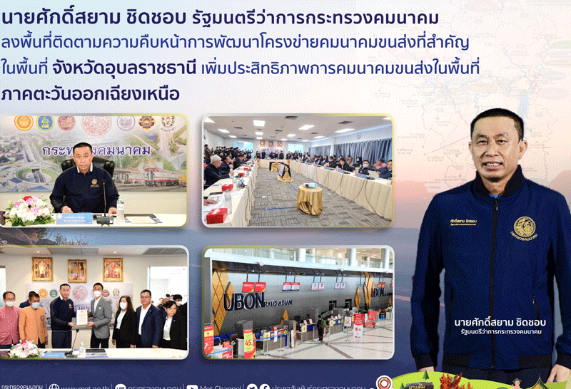 รมว.คมนาคม ลงพื้นที่ติดตามความคืบหน้าการพัฒนาโครงข่ายคมนาคมขนส่งที่สำคัญ ในพื้นที่จังหวัดอุบลราชธานี