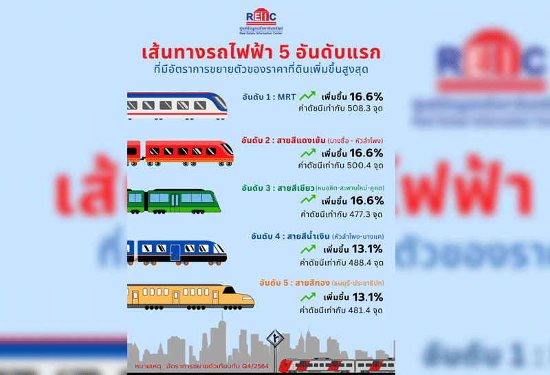 ธนาคารอาคารสงเคราะห์ เผย ดัชนีราคาที่ดินเปล่าก่อนการพัฒนา ในกรุงเทพฯ - ปริมณฑล ไตรมาส 4 ปี 2565 เพิ่มขึ้น ขณะเส้นทางแนวรถไฟฟ้า 5 สาย ขยายตัว