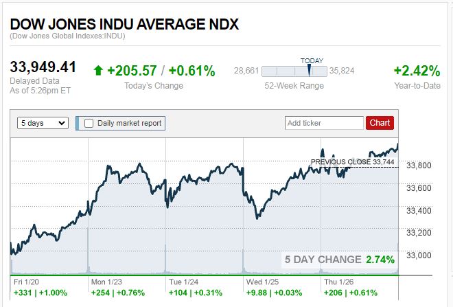 ดาวโจนส์ปิดบวก 205.57 จุด น้ำมันขึ้น ทองลง
