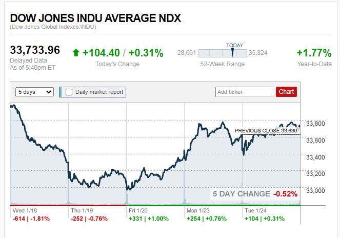 ดาวโจนส์ปิดบวก 104.40 จุด น้ำมันลง ทองขึ้น
