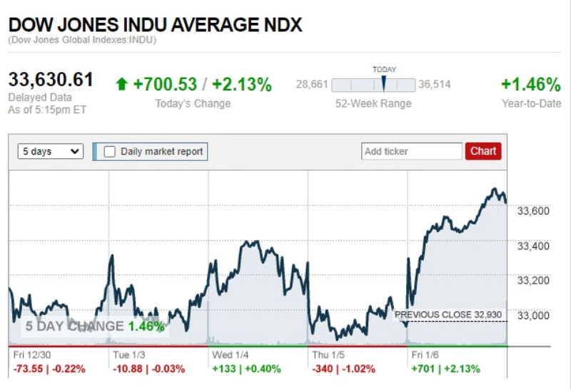 ดาวโจนส์ปิดพุ่ง 700.53 จุด น้ำมัน ทองขึ้น