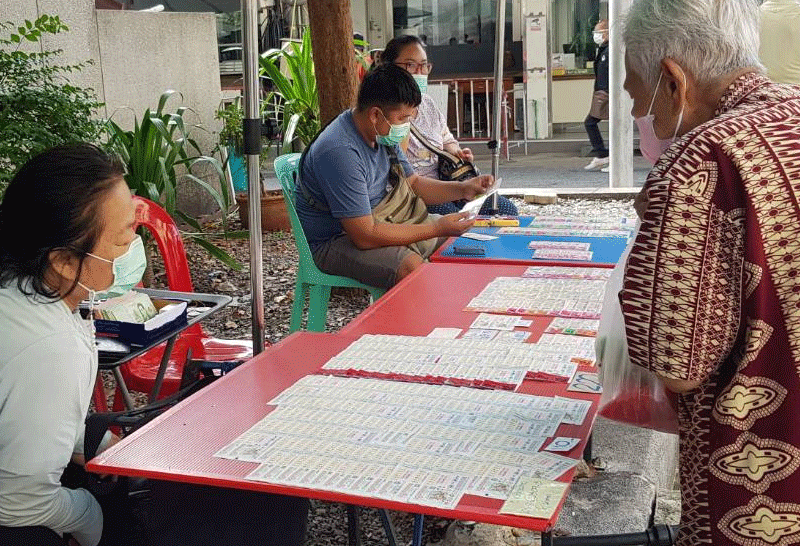 วันหวยออกแยกคอกวัวคึกคัก ประชาชนเลือกสลากลุ้นโชค แผงค้าจัดชุดราคาแพง