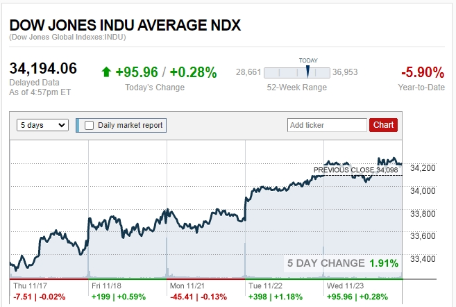 ดาวโจนส์ปิดบวก 95.96 จุด น้ำมันร่วงกว่า 3%