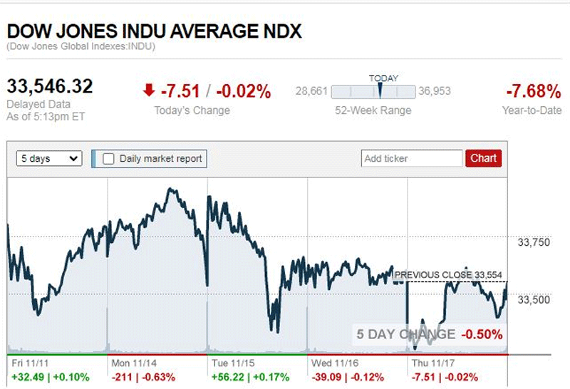 ดาวโจนส์ปิดลบ 7.51 จุด น้ำมัน ทองลง