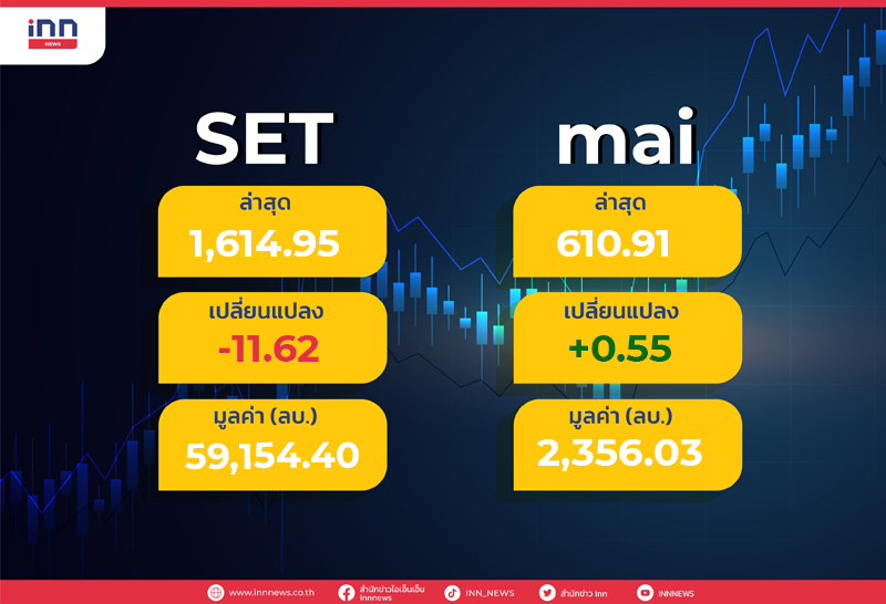 ตลาดหุ้นปิดลบ 5.03 จุด แตะ 1,614.95 จุด มูลค่าการซื้อขาย 59,154.40 ล้านบาท ลดลง 1,138 หลักทรัพย์