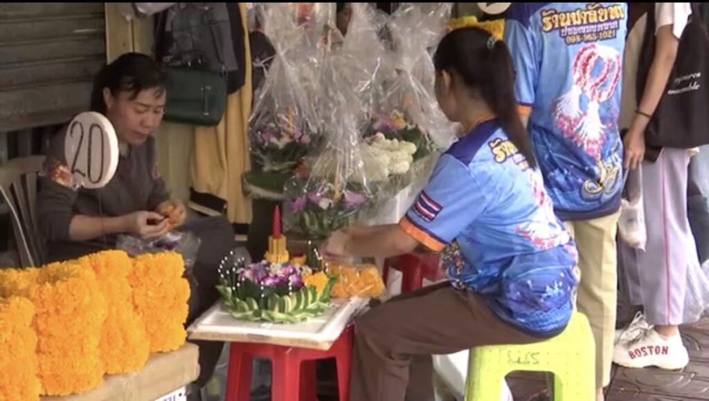 ปากคลองตลาดคึกคัก ปชช.เลือกซื้อกระทง ขณะใบตองแพงขึ้น พบ กระทงขนมปังขายดี