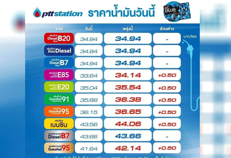 พรุ่งนี้ขึ้นเบนซินโซฮอล์ทุกชนิด 50 ส.ต. คงดีเซล