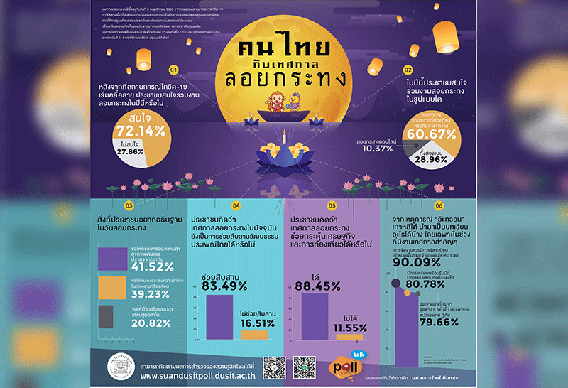 สวนดุสิตโพลชี้เทศกาลลอบกระทงช่วยกระตุ้นเศรษฐกิจได้ แนะรัฐบาลนำบทเรียนจากเหตุการณ์อิแทวอนปรับใช้
