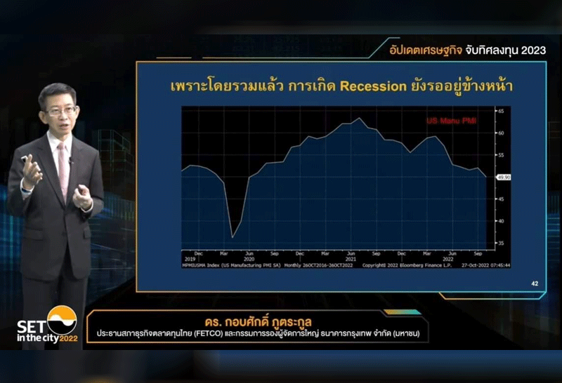 ประธาน สภาธุรกิจตลาดทุนไทย คาด เศรษฐกิจโลกปีหน้าชะลอตัว จับตาทิศทางดอกเบี้ยกระทบลงทุน-ตลาดเงิน