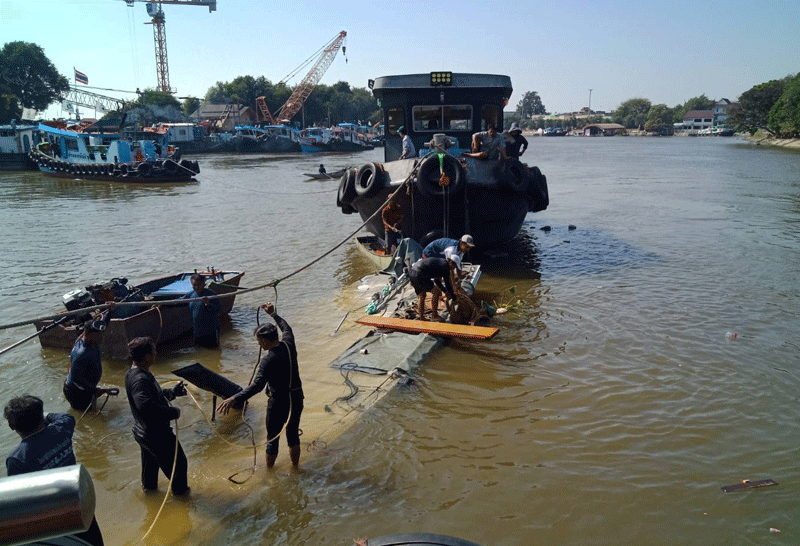 กรมเจ้าท่าติดตามการกู้เรือล่มแม่น้ำป่าสัก จ.อยุธยา
