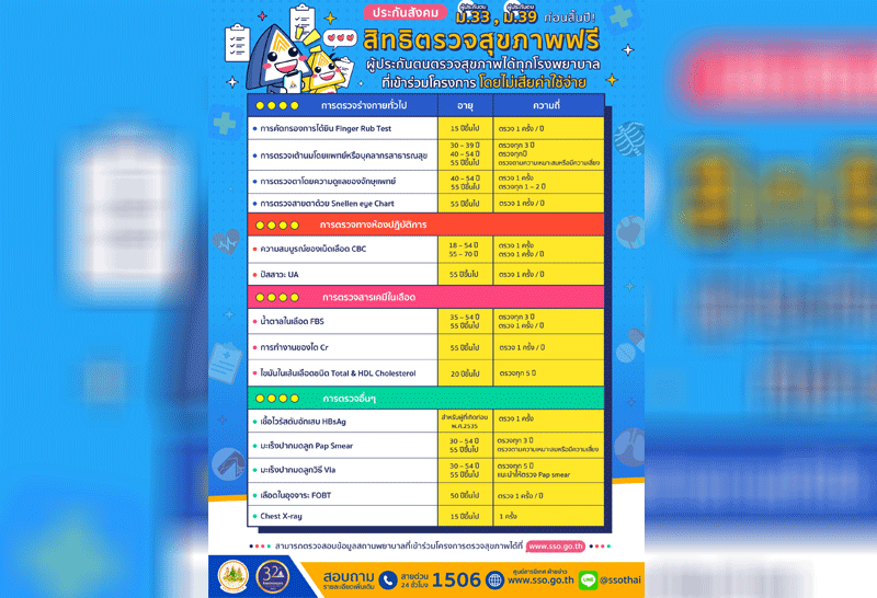 แจ้งสิทธิผู้ประกันตนมาตรา33,39 ตรวจสุขภาพฟรี