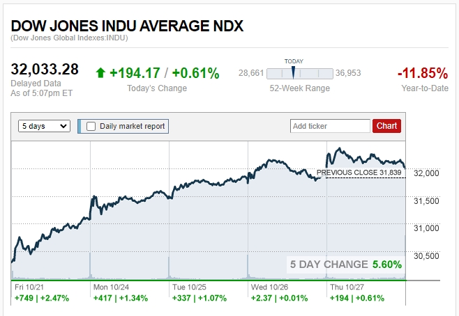 ดาวโจนส์ปิดบวก 194.17 จุด น้ำมัน WTI เพิ่มขึ้น 1.3% ทองร่วง แตะ 1,665.60 ดอลลาร์/ออนซ์ ขณะสหรัฐฯ เผย GDP ไตรมาส 3 โต 2.6%