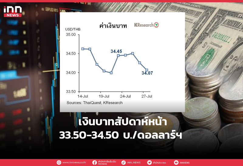เงินบาทสัปดาห์หน้า 33.50-34.50 บ./ดอลลาร์ฯ