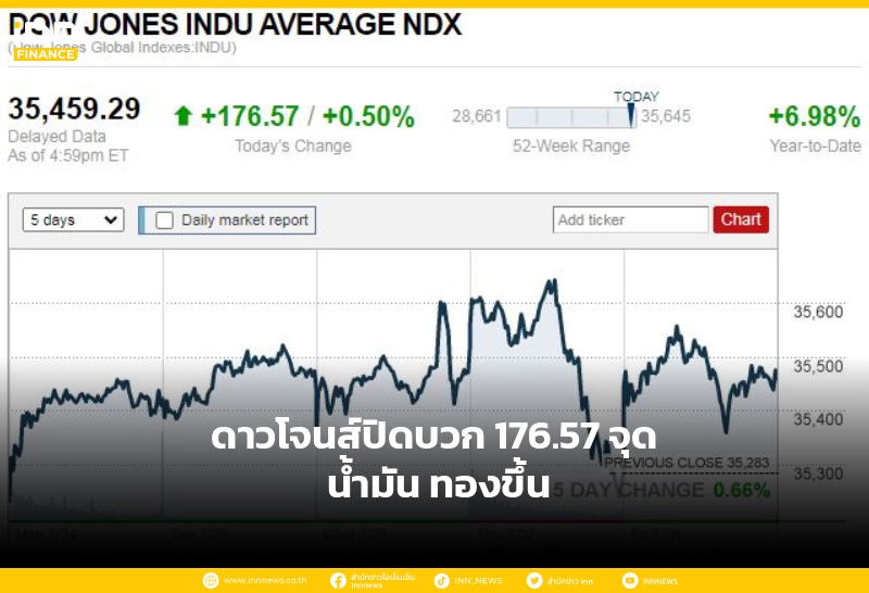 ดาวโจนส์ปิดบวก 176.57 จุด น้ำมัน ทองขึ้น