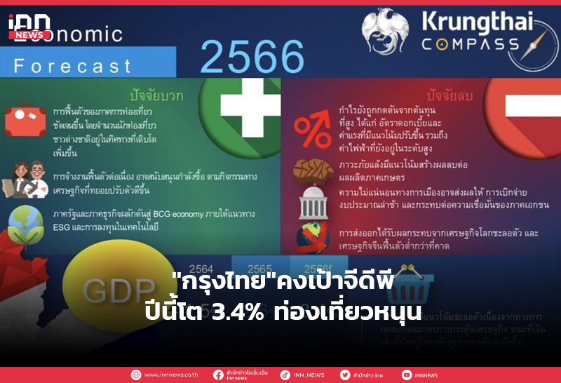 ศูนย์วิจัย Krungthai COMPASS คงเป้าเศรษฐกิจไทยปีนี้โตได้ 3.4% ท่องเที่ยวหนุน ขณะส่งออกติดลบ 1.6% จับตาการเมือง