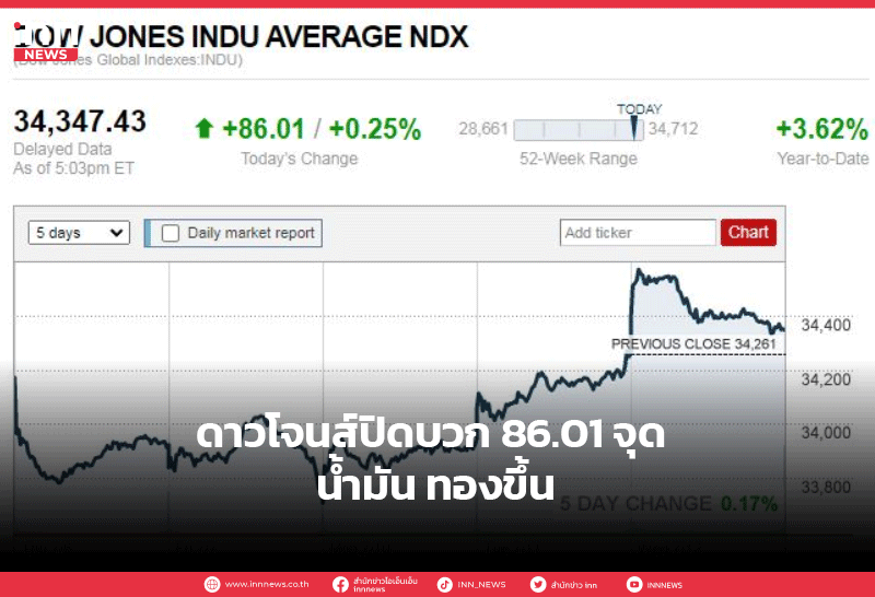 ดาวโจนส์ปิดบวก 86.01 จุด น้ำมัน ทองขึ้น