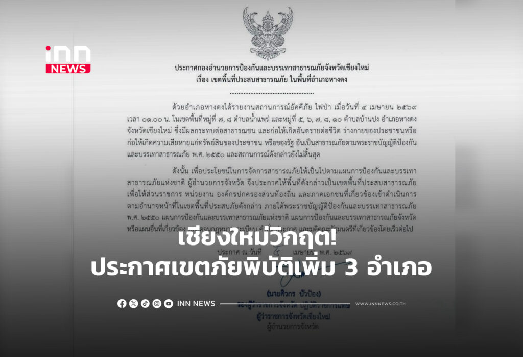 เชียงใหม่วิกฤต! ประกาศเขตภัยพิบัติเพิ่ม 3 อำเภอ "จอมทอง-หางดง-กัลยาณิวัฒนา" เร่งระดมความช่วยเหลือพื้นที่ไฟป่า