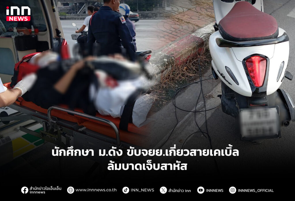 นักศึกษา ม.ดัง ขับจยย.เกี่ยวสายเคเบิ้ล ล้มบาดเจ็บสาหัส