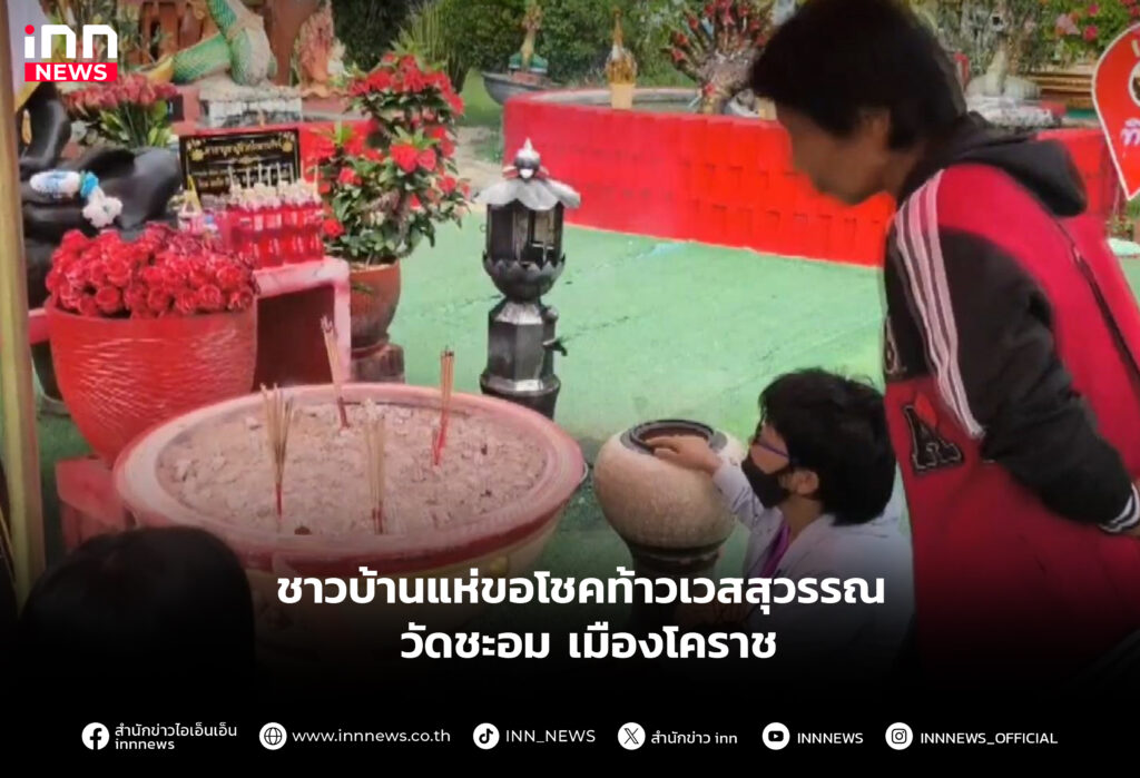 ชาวบ้านแห่ขอโชคท้าวเวสสุวรรณ ที่วัดชะอม เมืองโคราช หลังงวดที่ผ่านมาให้โชค 2 ตัวตรง พร้อมล้วงไหโชว์เลขเด็ดงวดนี้