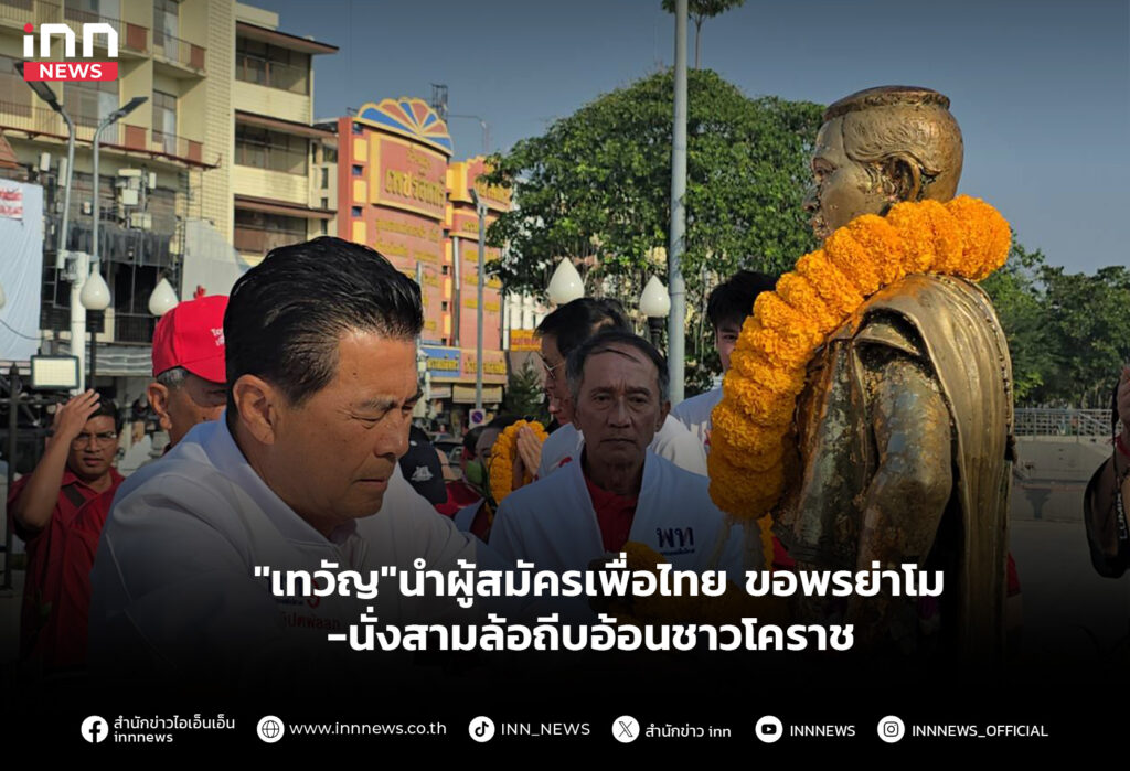 “เทวัญ”นำผู้สมัครเพื่อไทย ขอพรย่าโม-นั่งสามล้อถีบอ้อนชาวโคราช