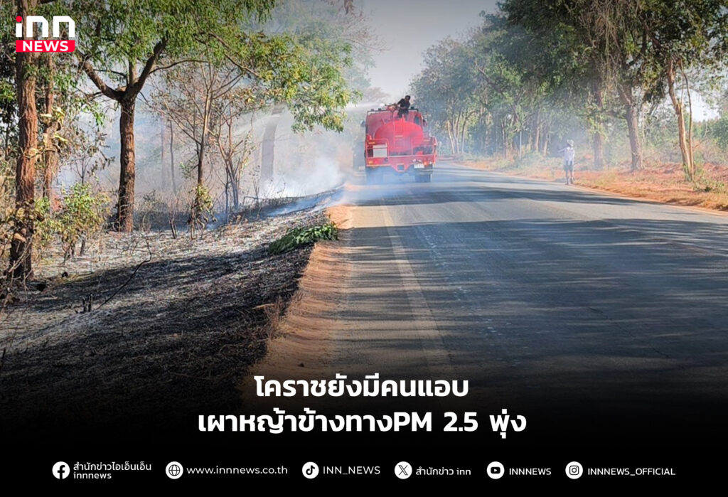 โคราชยังมีคนแอบเผาหญ้าข้างทางPM 2.5 พุ่ง