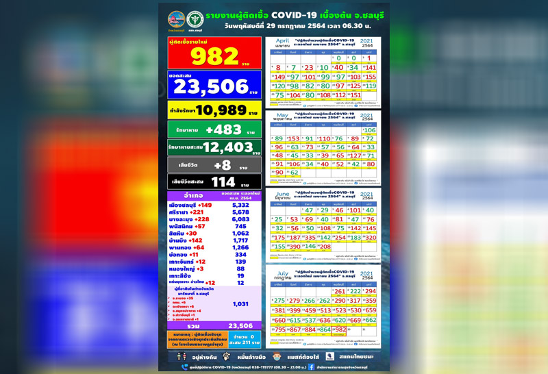 ชลบุรีพบโควิดเพิ่ม982ค้นหาเชิงรุกกว่า800