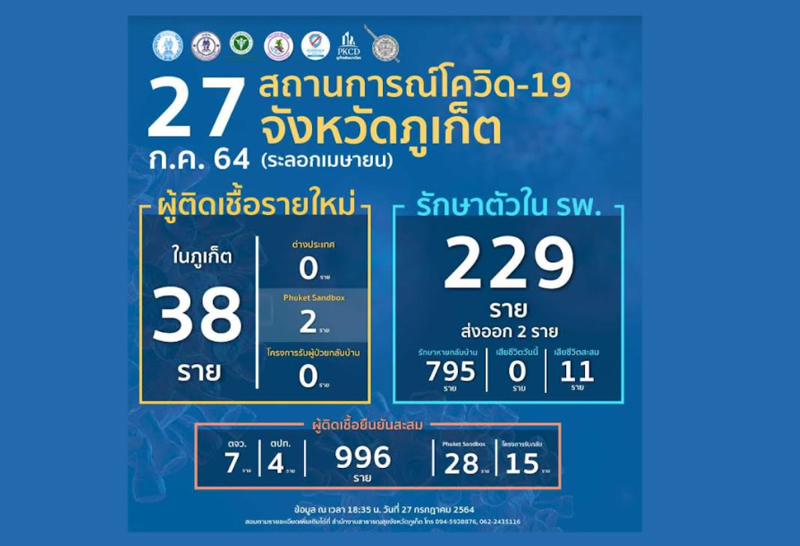 ภูเก็ตพบผู้ติดเชื้อ 13 คน จากผลการตรวจกลุ่มผู้สัมผัสเสี่ยงสูง 27 คน ในแคมป์คนงาน