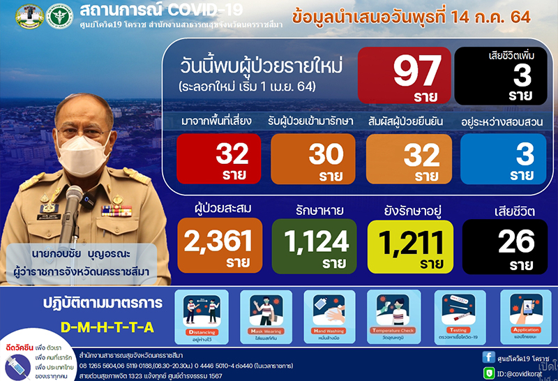 โคราชกังวล 2 คลัสเตอร์ใหม่ วงพนัน-น้ำตกวังเณร ขณะยอดผู้ป่วย ยังสูง 97 ราย เสียชีวิตแล้ว 3 ราย
