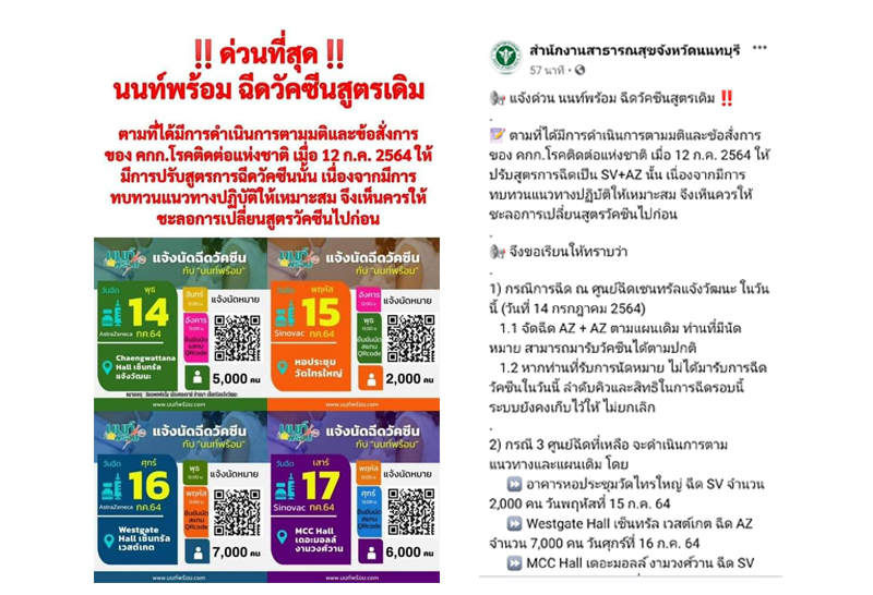 ยอมถอย! นนทบุรี กลับลำ แจ้งฉีดวัคซีนให้ประชาชนตามแผนเดิมที่ได้นัดหมายไว้