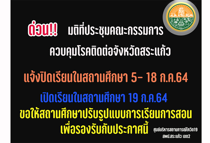 สระแก้วประกาศปิดสถานศึกษาหลังพบเด็กติดโควิดหลายแห่ง วันนี้พบเพิ่มในจังหวัด 10 ราย