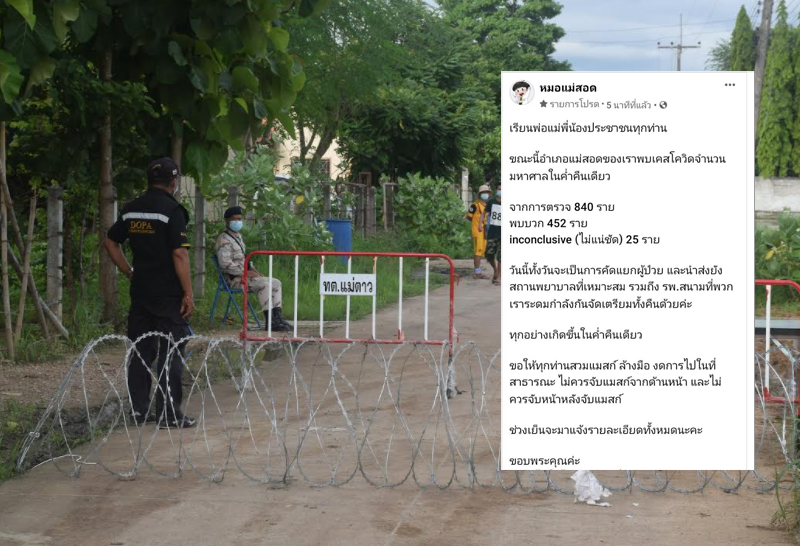 ตะลึง! เพจหมอแม่สอด โพสต์ facebook ผลตรวจ โควิดในโรงงาน 840 ราย พบติดเชื้อ 452 เตือนสวมแมสก์