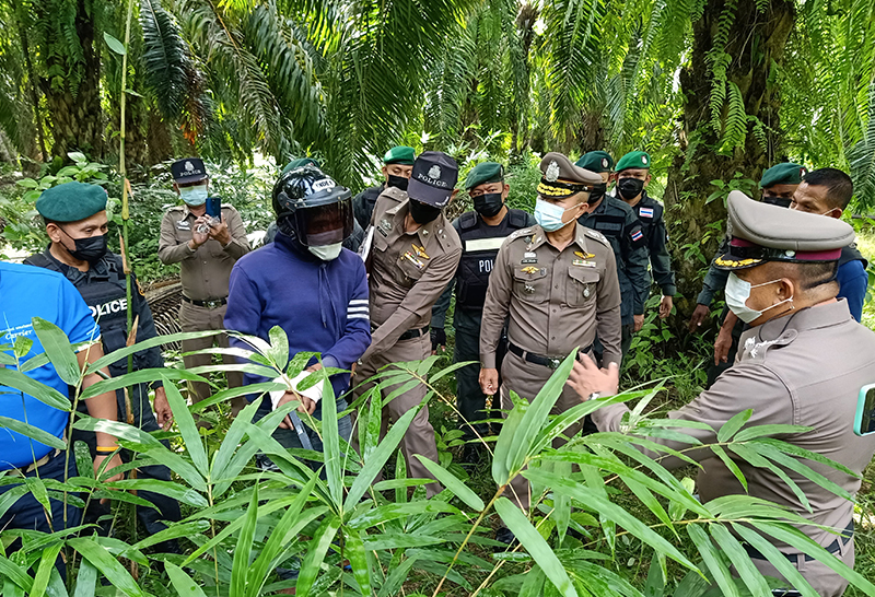 ตำรวจพังงา นำตัวมือปืนยิงหนุ่มวัย 21 ปี ดับคาสวนปาล์ม ทำแผนรับสารภาพแค้นแทนเพื่อน
